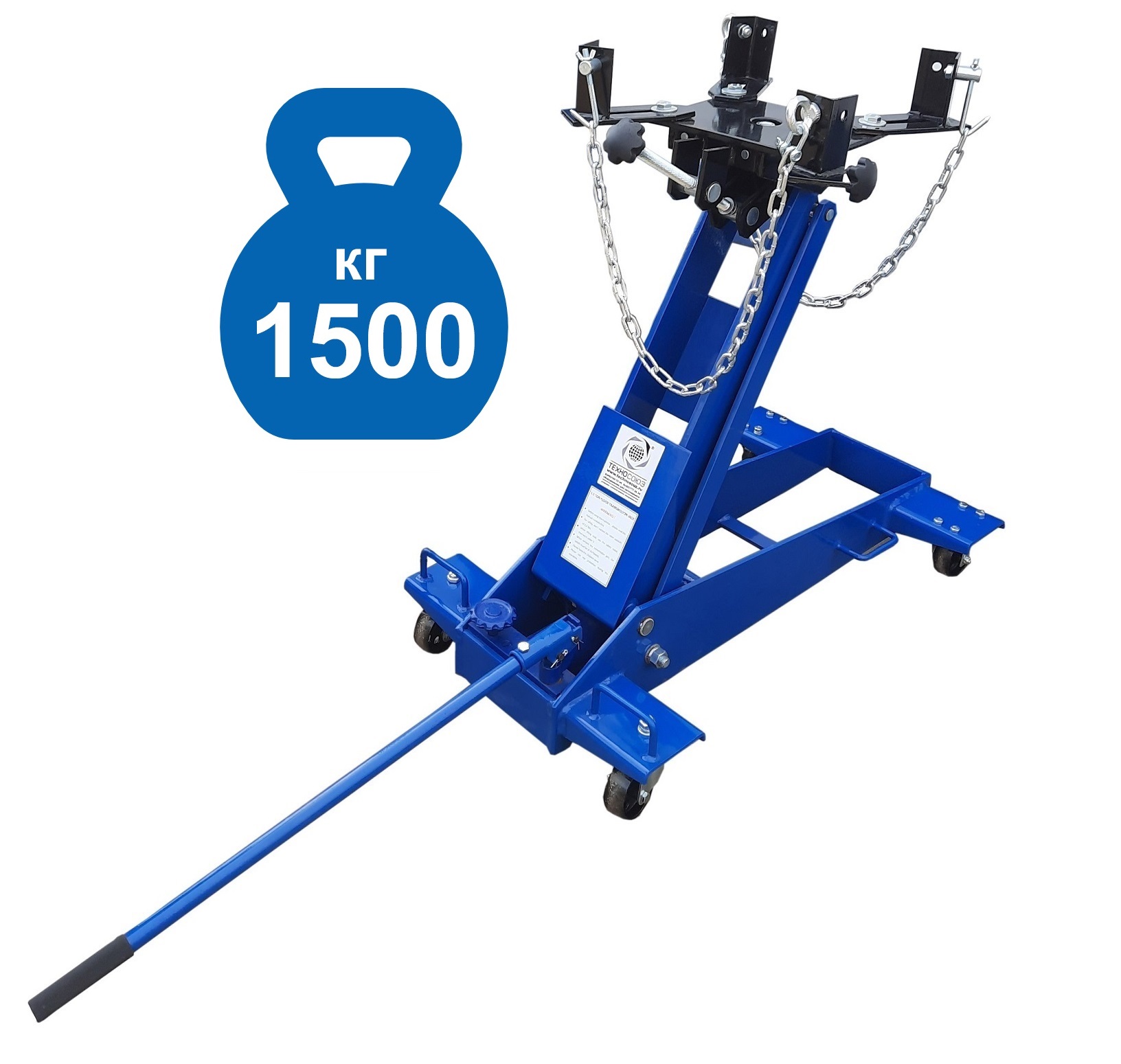 Стойка трансмиссионная (домкрат трансмиссионный) для снятия/установки ОСОБО ТЯЖЕЛЫХ АГРЕГАТОВ (КПП, мостов и т.п.) г/п 1,5т. Устойчивый и маневренный – два колеса поворотные. Подъем 230-880мм. Оборудован страховочной цепью, для фиксации агрегата. Приемная площадка регулируется с фиксацией в трех плоскостях: продольно, по наклону, по оси вращения.