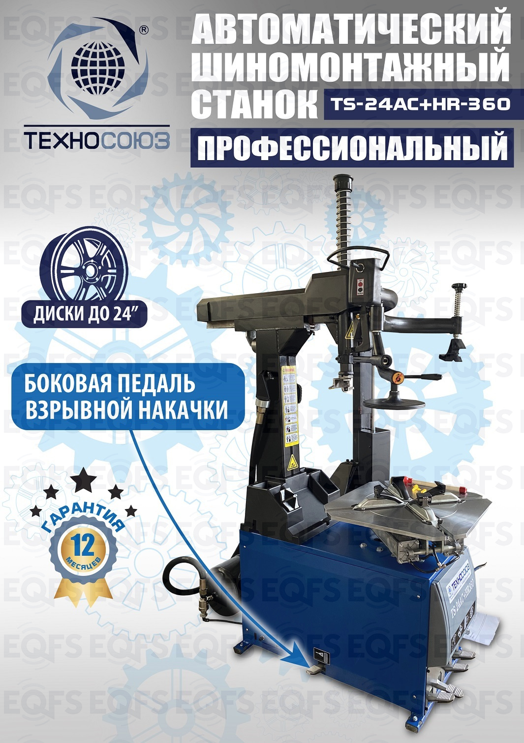 Автоматического шиномонтажного стенда TS-24AC+HR-360. В комплекте взрывная подкачка + третья рука для работы с низкопрофильными шинами и RanFlat! Для колес легковых автомобилей, легких грузовиков, микроавтобусов и коммерческой техники. Для дисков: внешний 10÷21”, внутренний 12÷24”. Напряжение 220/380В. Гарантия 18 мес. – наш монтаж, 12 мес. – самостоятельная установка.