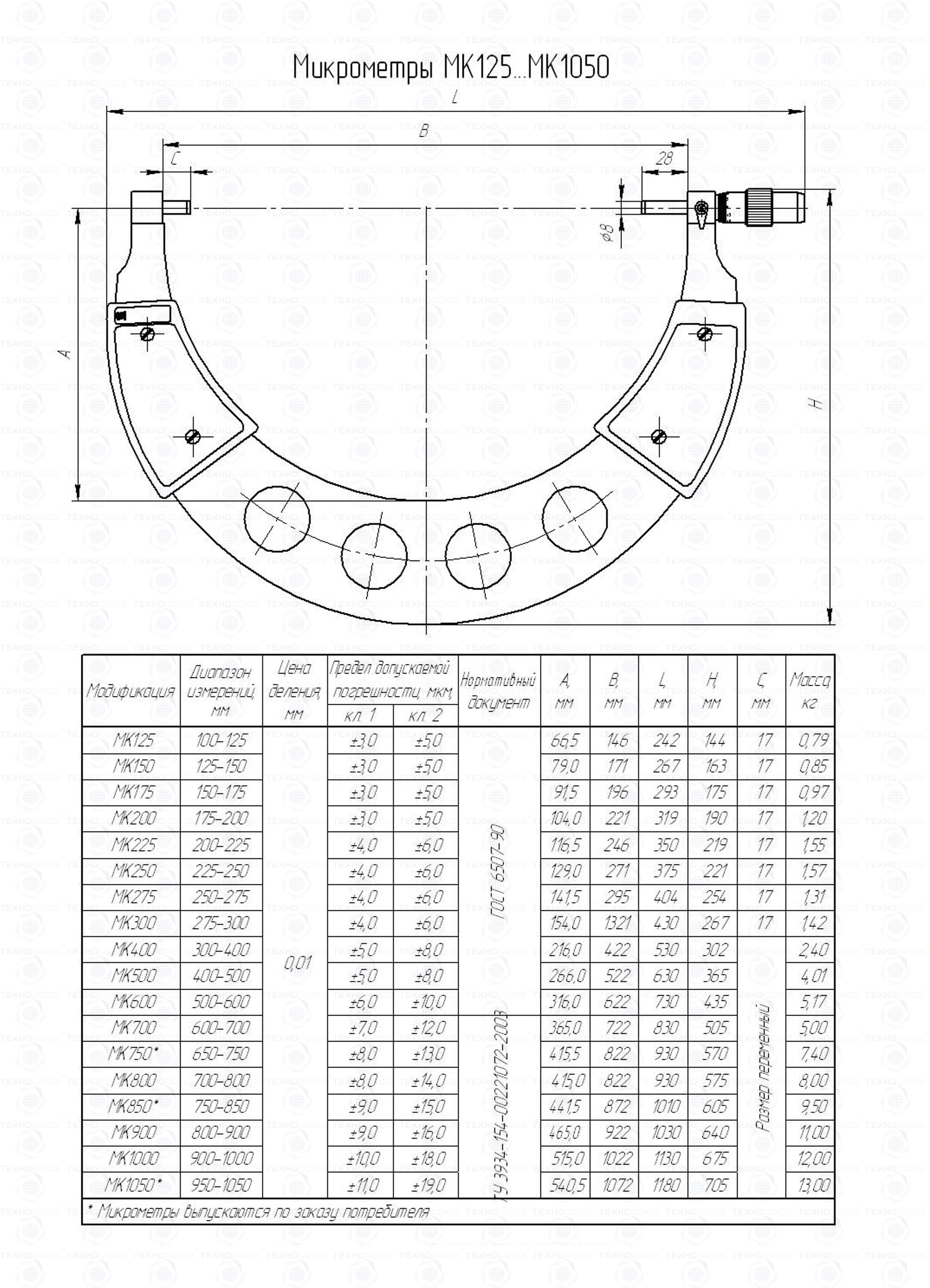 Цена деления 0,01 мм. Диапазон измерения от 200-225 мм. Для измерения наружных размеров изделий. Измерительные поверхности микрометра оснащены твердым сплавом. Микрометры укомплектованы одной установочной мерой. Класса точности 1. ГОСТ 6507-90. Поставляется в двух вариантах с поверкой и без поверки!