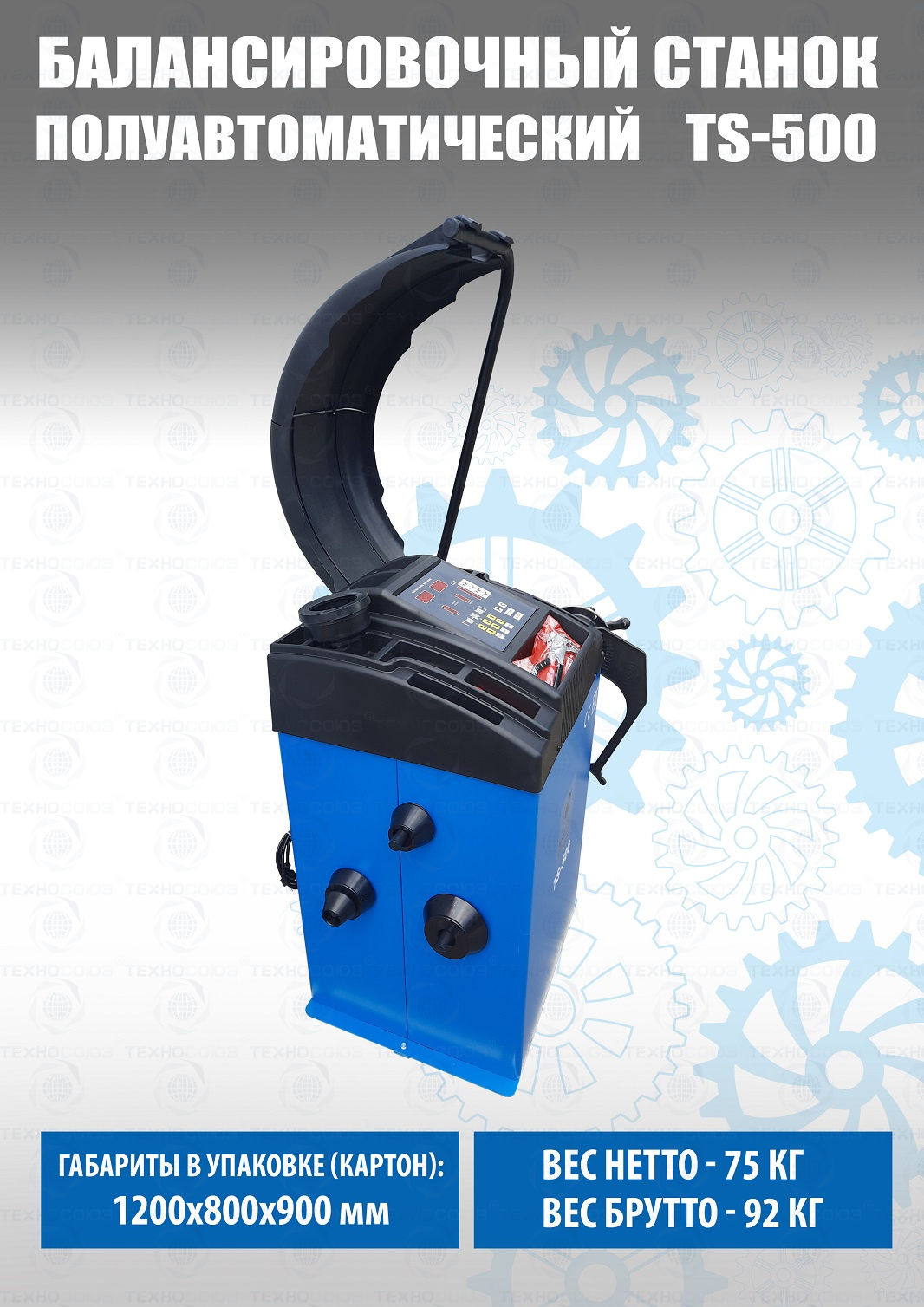 + TS-500 Полуавтоматический балансировочный станок для колес легковых автомобилей, мотоциклов и легких грузовиков. В комплекте: кожух с автозапуском + клещи + кронциркуль + быстрозажимная гайка + набор конусов. Для балансировки колес с диаметром диска с резиной до 760 мм. Размеры диска: ширина 3–9” (76-228 мм) , диаметр диска" -  10–21” (254-533 мм). Вал-36 мм. Максимальный вес колеса с диском – 65 кг. Точность ±1гр. Напряжение 220В. Данные станки возим более 10 лет. Надежные - в сезон не подведут! Напряжение шиномонтажных станков 220В или 380В на выбор.