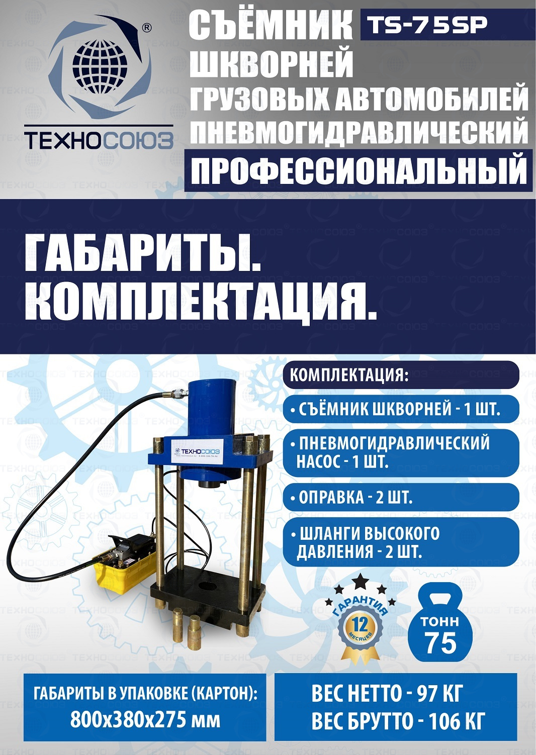 Преимущества выпрессовщика шкворней TS-75SP: